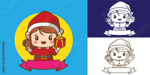 santa girl costume good for, sticker, mascot logo, element design, etc