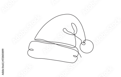 Santa Hat One Line Drawing – Minimalist Christmas Holiday Outline Vector Illustration