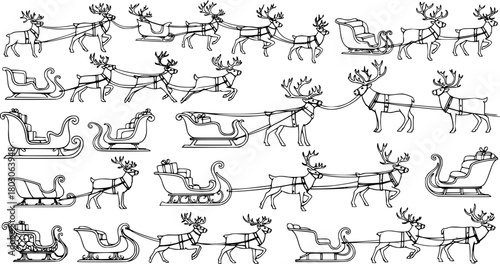 Santa's Sleighs and Reindeer: Hand-Drawn Christmas Outlines