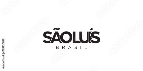 Sao Luis in the Brasil emblem. The design features a geometric style, vector illustration with bold typography in a modern font. The graphic slogan lettering.