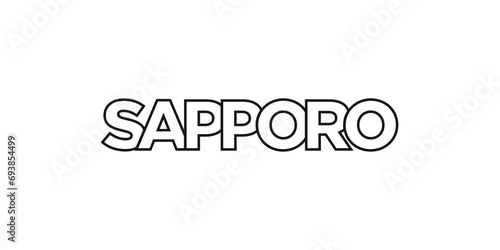 Sapporo in the Japan emblem. The design features a geometric style, vector illustration with bold typography in a modern font. The graphic slogan lettering.