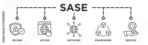 SASE banner web icon illustration concept of secure access service edge with icon of security, password, network, framework and support