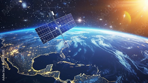 Satellite orbiting Earth with city lights