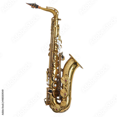 Saxophone gleaming in studio light showcases intricate design and craftsmanship