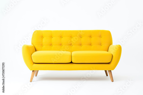 Scandinavian-Style Yellow Sofa Isolated on White Background