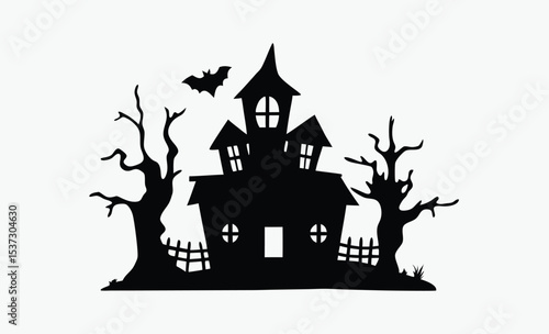 Scary house silhouette, haunted house vector, halloween spooky home, ghost house icon