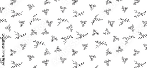 Scatter seamless pattern with beautiful flower and leaf line style in black color on a transparent background
