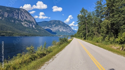 Scenic Highway Along Serene Lake and Majestic Mountain Landscape