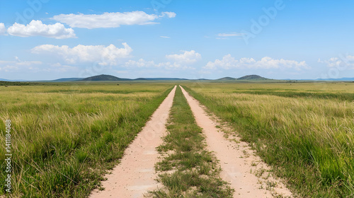 Scenic Open Dirt Road Through Lush Green Field