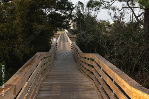 Scenic Walk Crossover. A scenic wooden footbridge at the end of 9th Street over the Davis Canal, Oak Island, North Carolina.
