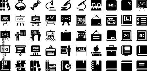 School Icon Set Isolated Silhouette Solid Icons With Icon, School, College, Vector, Set, Education, University Infographic Simple Vector Illustration