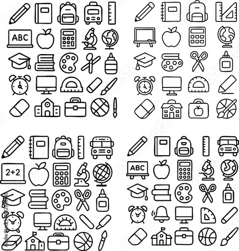 School Supplies Icons Set.