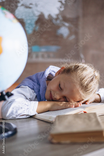 Schoolgirl sleeping at the desk in class