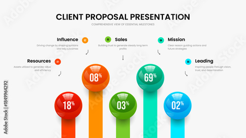 Science Solution 5 Step Diagram Presentation Layout. Advertising Showcase Slide Design Vector Illustration. Colorful Analysis Five Option Graph Slideshow Template.