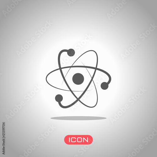 scientific atom symbol, logo, simple icon. Icon under spotlight. Gray background