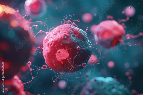 Scientific breakthrough in cancer treatment, visualization of targeted drug molecules, lab environment banner wallpaper background
