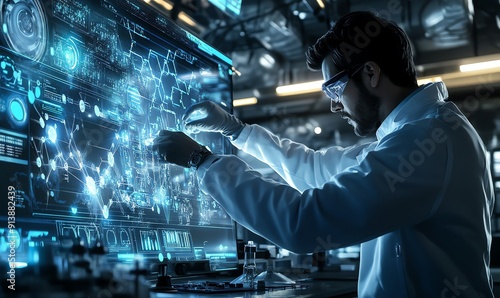 Scientist in a Lab Examining Data on a Large Screen