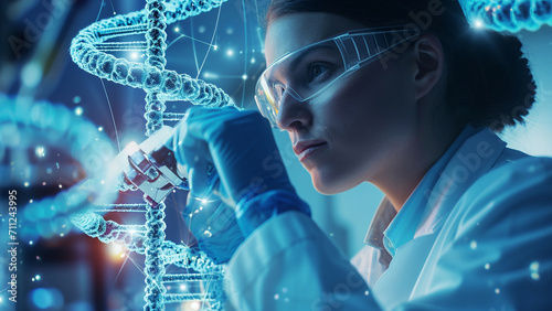 Scientist Microscope Slide Examination and DNA Helix Fusion