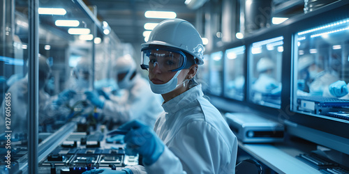 Scientist working with equipment in laboratory, Researcher working with industrial equipment in lab