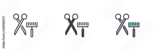 Scissors and comb different style icon set