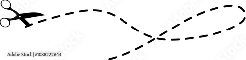 Scissors with cut lines. Paper cut icon with dotted line