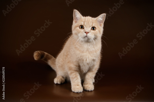 Scottish straight shorthair cat on colored backgrounds