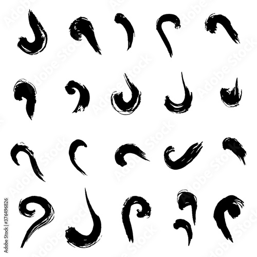 scroll brush strokes; vector set; vintage decorations; calligraphic elements, grunge shapes; decorative pattern; scrolls