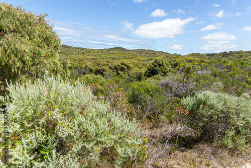Scrub on the hill above the southern shore of the Nornalup Inlet in the Walpole-Nornalup National Park, Shire of Denmark, Great Southern region of Western Australia, WA, Australia.