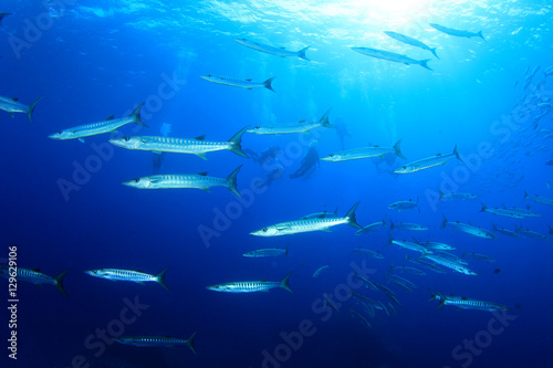 Scuba diving with barracuda fish