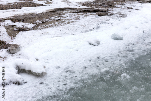 Sea covered with broken ice. Front focus. Black sea in winter