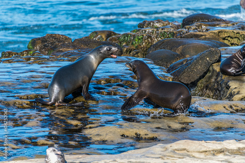 Sea Lions Playing in the Water