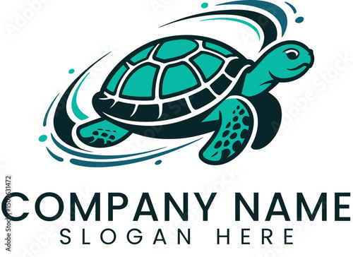 Sea Turtle Logo Design Green Ocean Animal eco icon life swim
