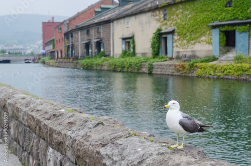 Seagull standing on a rock at otaru canal hokkaido
