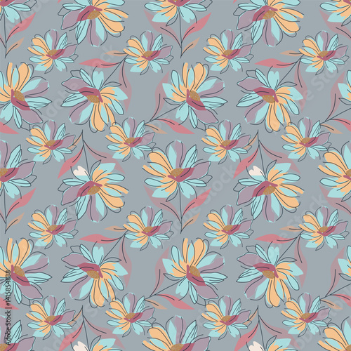Seamless abstract floral.abstract background, beautiful, blossom, drawn, floral, flower background, flowers