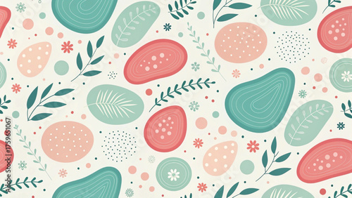 Seamless abstract minimal pattern with organic blob shapes irregular rounded spots scattered across background
