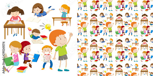 Seamless background design with kids at school