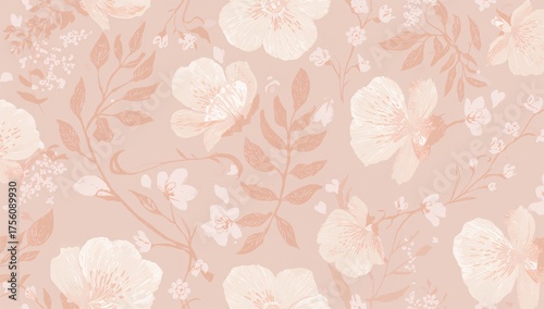 Seamless bohemian design featuring white blossoms on a pink backdrop