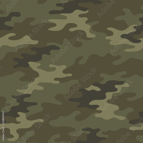 Seamless camouflage pattern. Khaki texture, vector illustration. Camo print background. Abstract military style backdrop