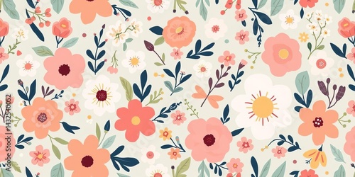 Seamless childish floral pattern Scandinavian style, abstract flowers and leaves, pastel colors, nature, kids