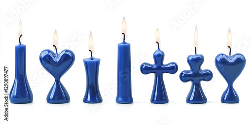 Seamless Christian Background with Blue Candles in Cross and Heart Shapes, Symbol of Faith and Spirituality on White Background