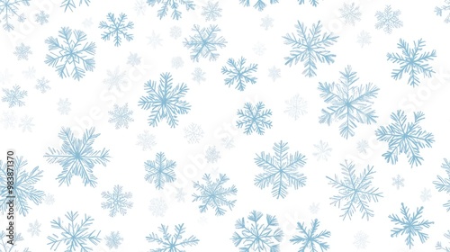 Seamless Christmas pattern featuring snowflakes in light blue on a white background