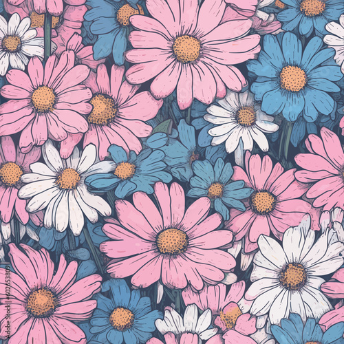 Seamless Colorful Daisy Pattern. Seamless pattern of daisys in colorful style. Add color to your digital project with our pattern!