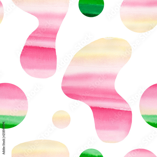 Seamless cute dotted and spot pattern. Abstract background with watercolor shapes