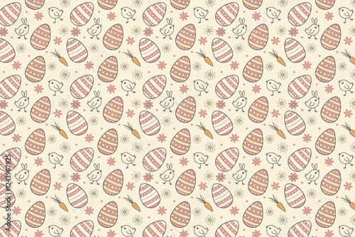 Seamless Easter Egg and Floral Geometric Pattern Design