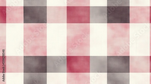 Seamless fabric-like plaid grid with harmonious pink and gray squares