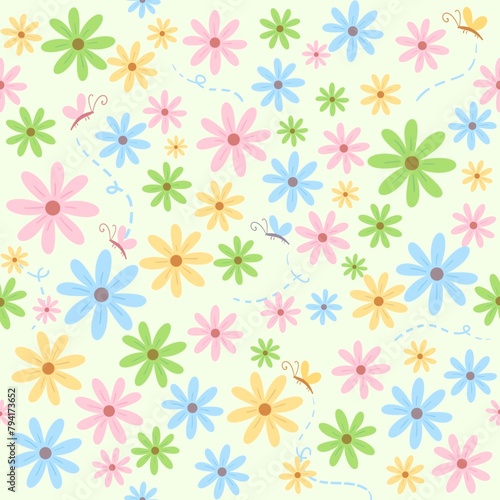 seamless floral pattern, spring seamless pattern of flowers and butterflies background for design, decoration, printing