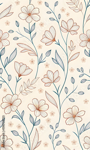Seamless floral pattern with flowers and leaves for vintage textile design