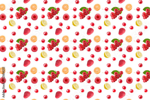 seamless food pattern with fresh fruits on white background
