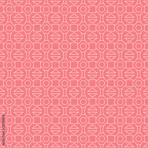 Seamless geometric pattern. Beige mixed geometric shapes on pink background