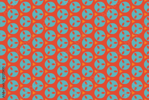 Seamless geometric pattern design illustration. In red, orange, blue colors.